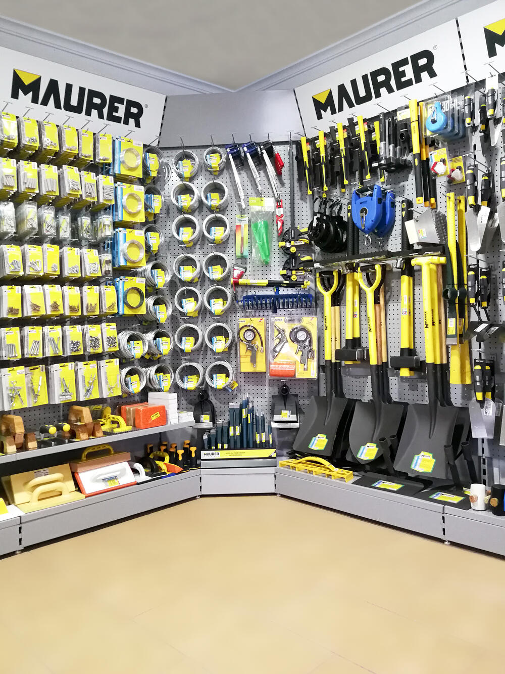 14 lineales.El cliente, asesorado por nuestro equipo de implantaciones, opta por surtido muy variado que abarca desde herramientas y bricolaje, pasando por electricidad básica y fontanería, menaje y jardín.