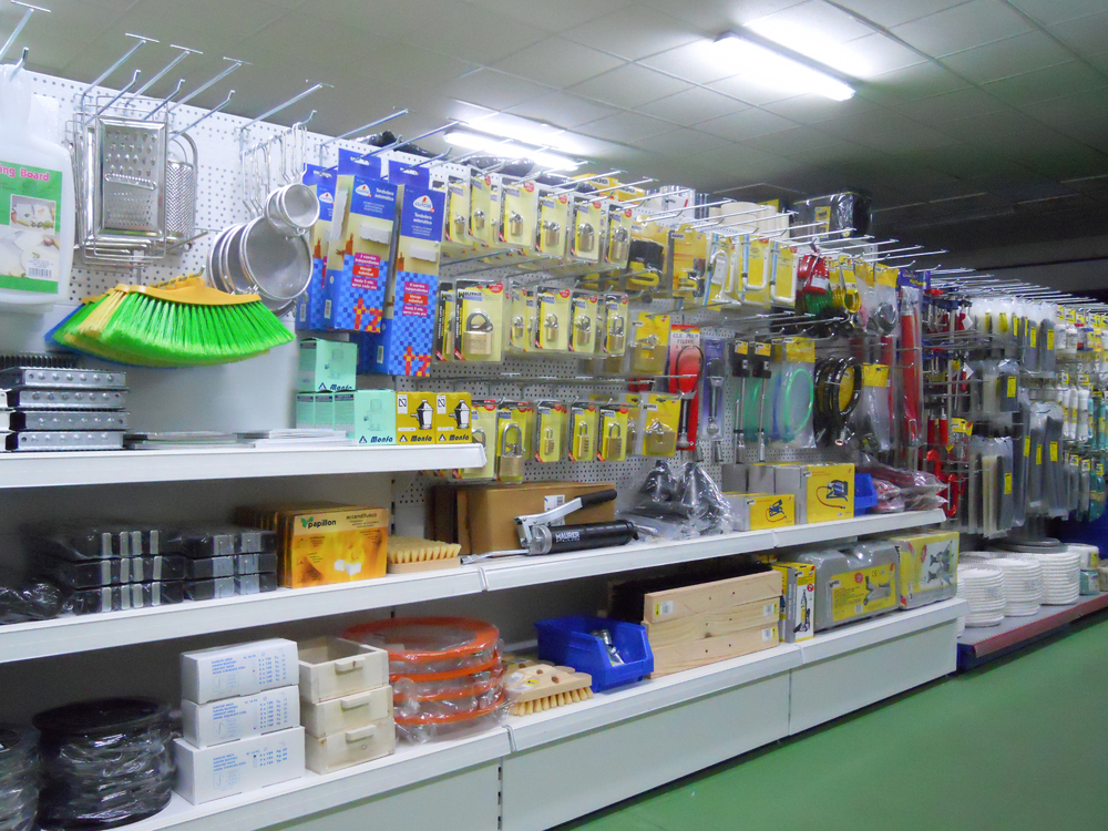 DATOS IMPLANTACIÓN:- Ubicación: Polígono Industrial - Tamaño local: 140 m2.- Metros lineales de expositores: 28 lineales.El cliente, asesorado por nuestro equipo de implantaciones, opta por surtido muy variado que abarca desde herramientas y bricolaje hasta ferretería doméstica, pasando por, electricidad básica y fontanería, menaje y jardín.