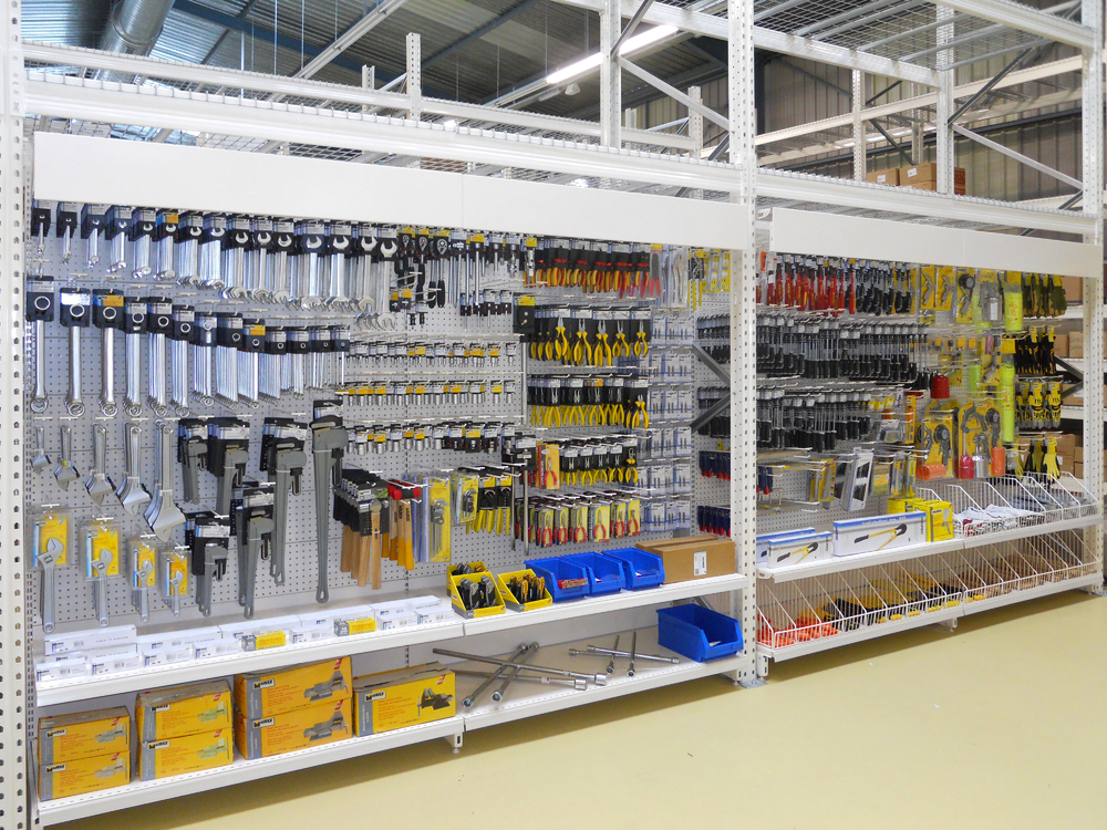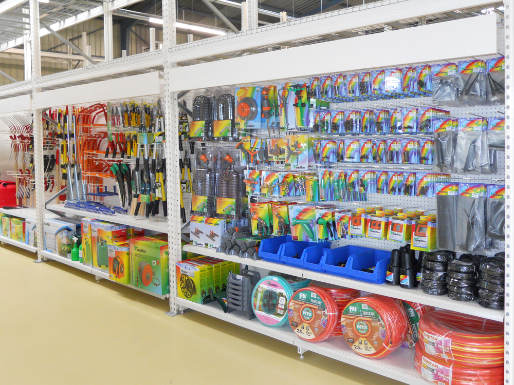 DATOS IMPLANTACIÓN:- Ubicación: Polígono Industrial - Tamaño local: 120 m2.- Metros lineales de expositores: 14 lineales.El cliente, asesorado por nuestro equipo de implantaciones, opta por surtido muy variado que abarca desde herramientas y bricolaje hasta ferretería doméstica, pasando por, electricidad básica y fontanería, menaje y jardín.